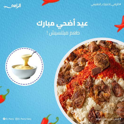 في عيد الأضحى ، مفيش أحلى من اللحمة الطازة والفتة المتغرقة بسمن بلدي طبيعي سمن جاموسي الرامي … طعم مصري أصيل كل عام وأنتم بخير و أضحى مبارك عليكم مع طعم مايتنسيش… متوفرة فى جميع فروع هايبرماركت محمود الفار ، وهايبر مصر مدينة نصر و منفذ بيع الرامي (المنصوره – نادي الحوار) #عيد_الأضحى #الرامي_للألبان #سمنة_طبيعية […]
